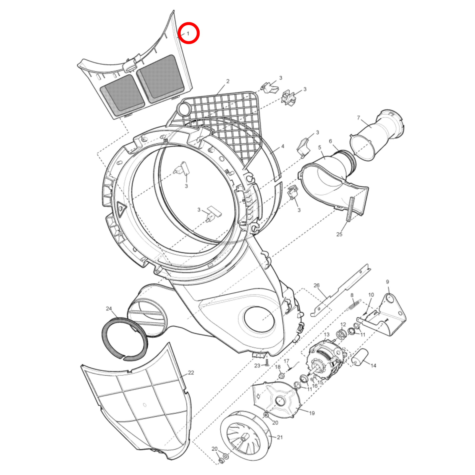 8581334035129 supersedes 1334035126, 0144300021 and is number 1 on the diagram (2nd last photo). The diagram is from model EDV605S (916002031 00).