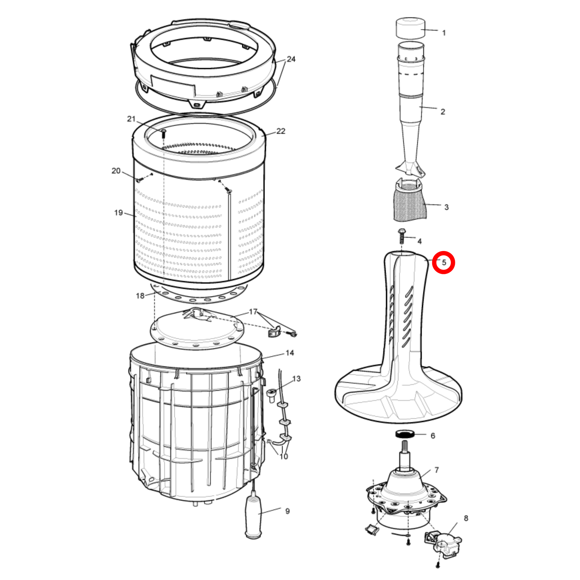 85802312280024 Simpson, Westinghouse Washing Machine Agitator - 0231228001