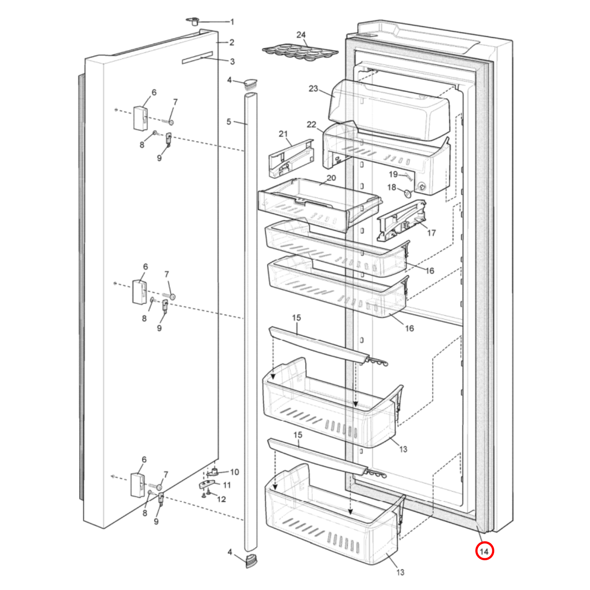 85814588407 Electrolux, Simpson, Westinghouse Fridge Door Seal - 1458840, 1445768K