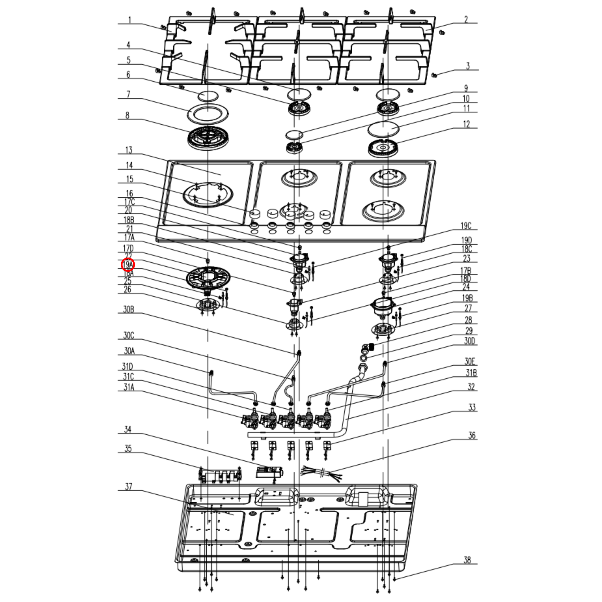 30401800008 Arda, Technika Gas Cooktop Wok Thermocouple 400MM - 32312010