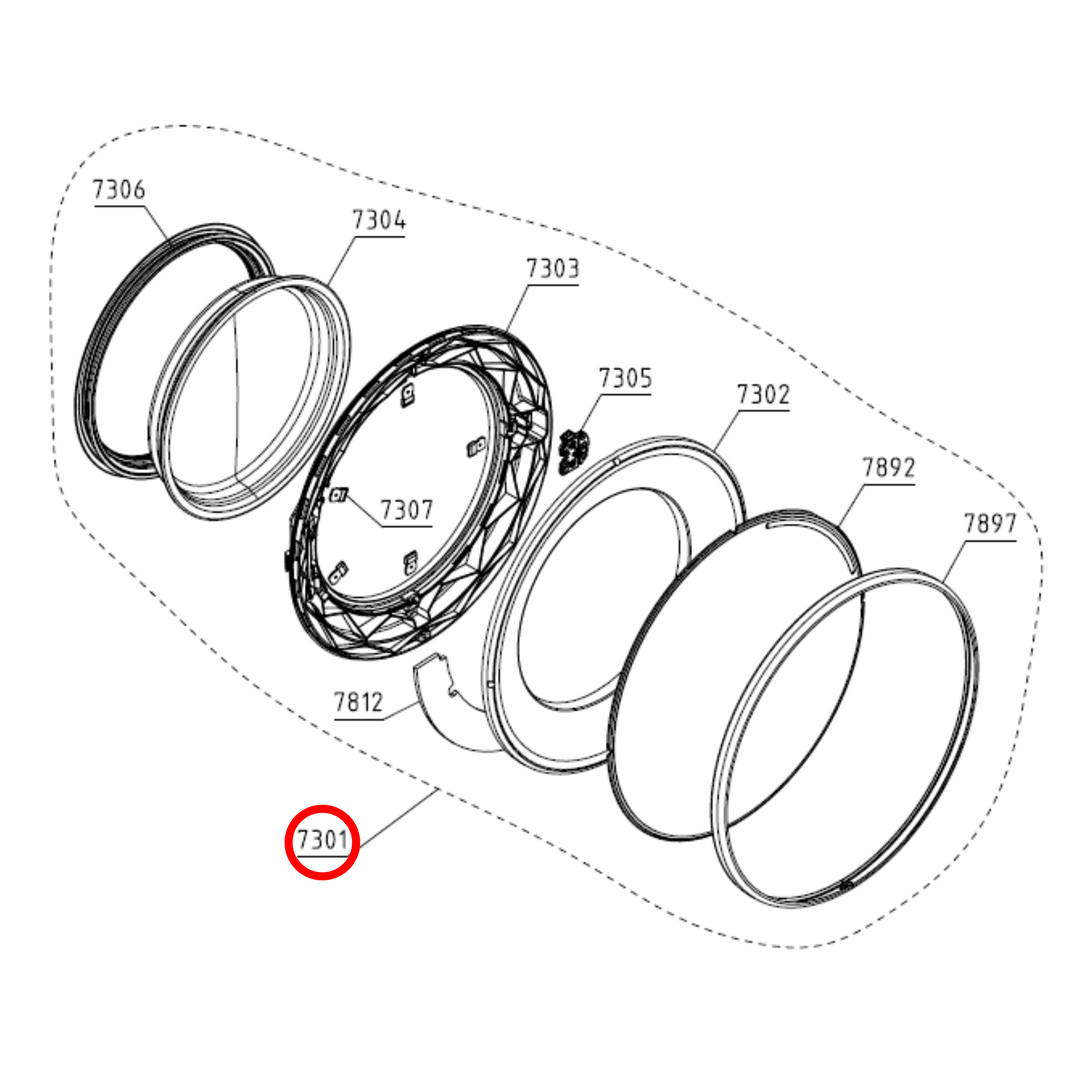 948918 Asko Washing Machine, Tumble Dryer Door Assembly - 796065