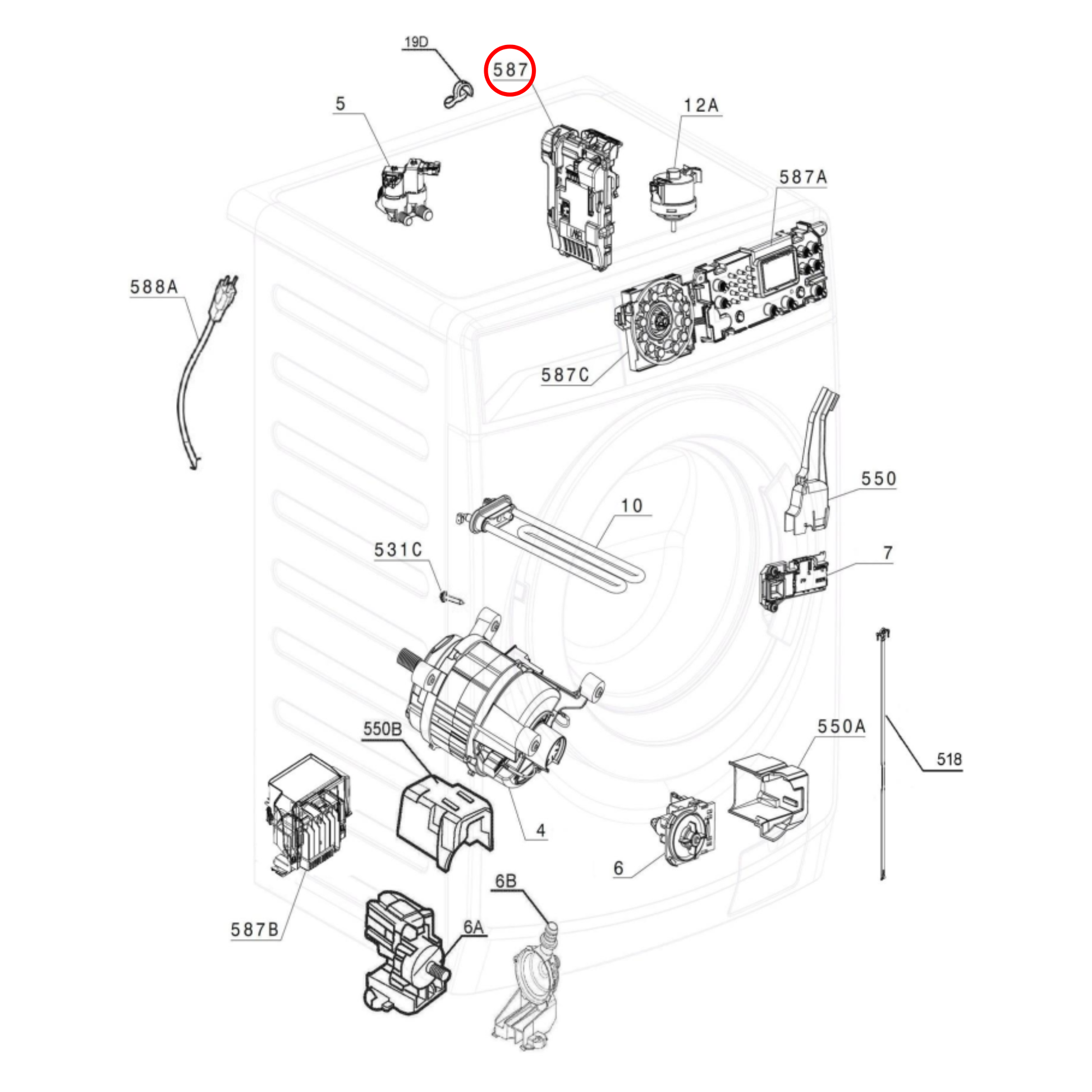 807010414D is number 587 on the diagram. The diagram is from model EWF14742 (91490036201).