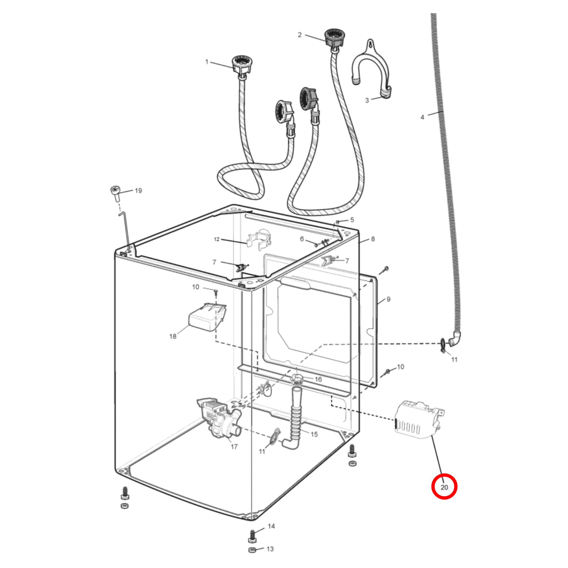 4055984860 supersedes A04725002, A04725002K, 4055984860 and is number 20 on the diagram. The diagram is from model SWT1043 (91304113600).