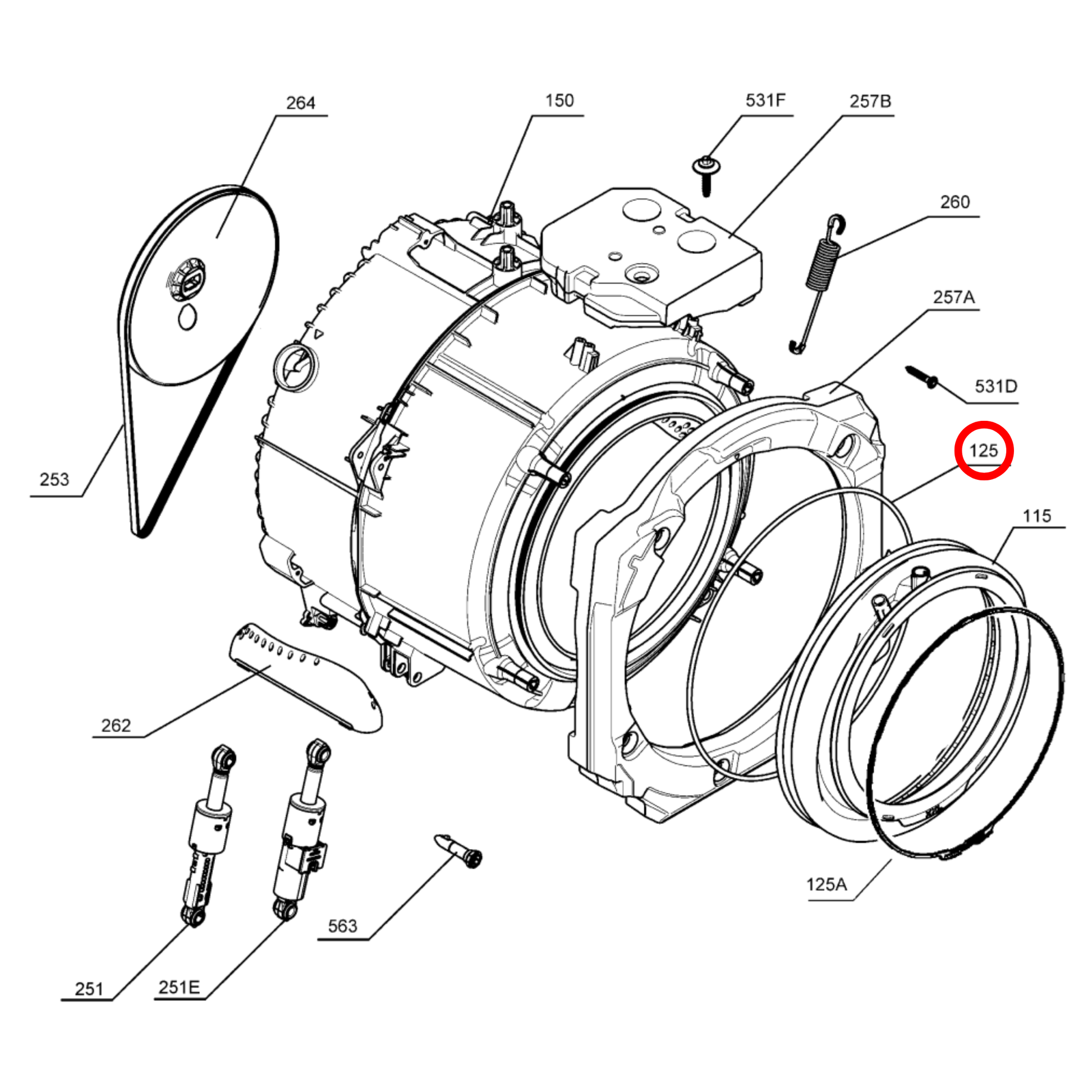 1325621009 AEG, Electrolux Front Load Washing Machine Door Seal Spring Tub