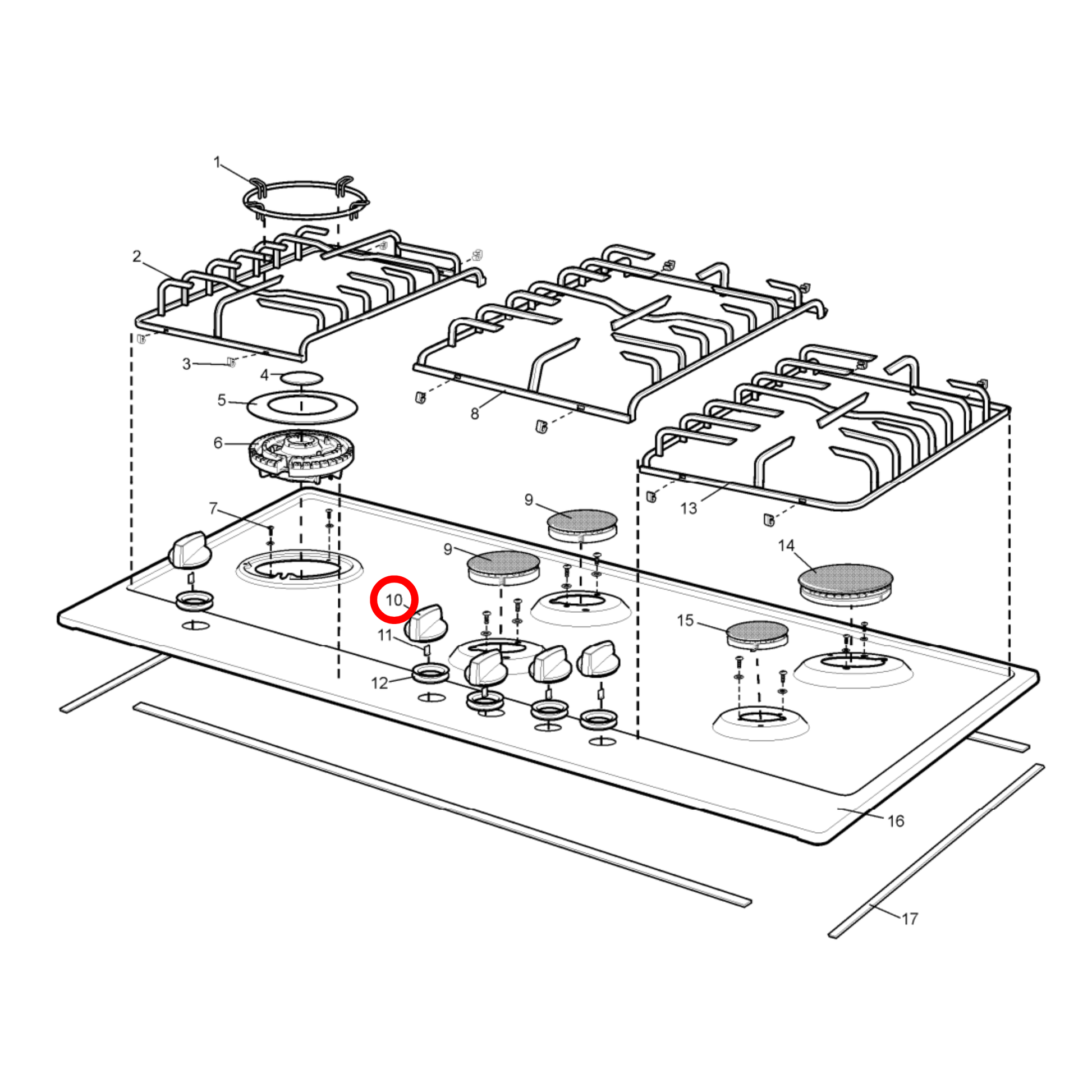 4055980306 Electrolux, Westinghouse Cooktop Knob Pack Of 5 Silver - 305382105K